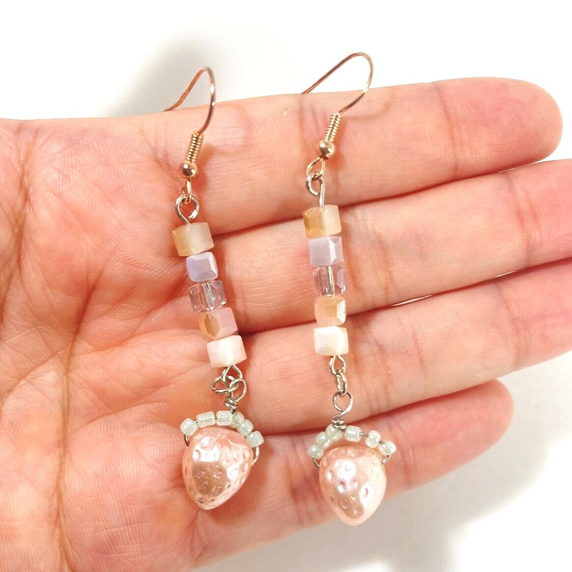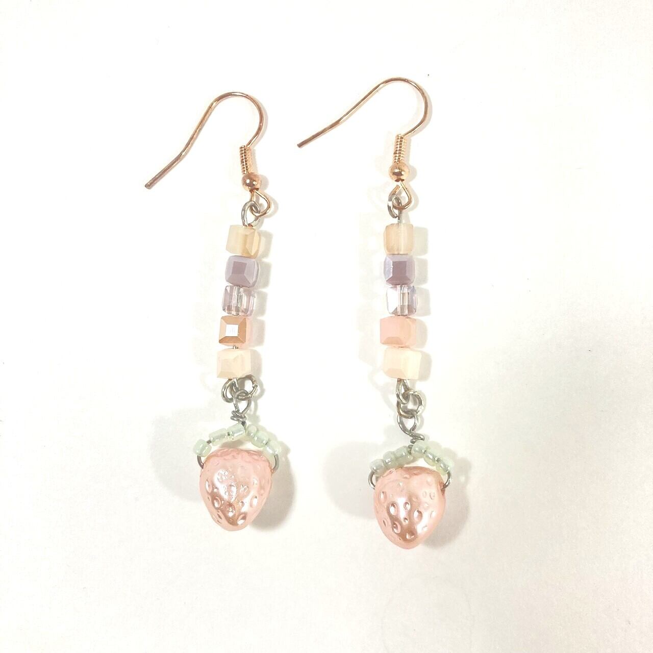 キュートさ全開!キラキラキューブといちごのピアスです。