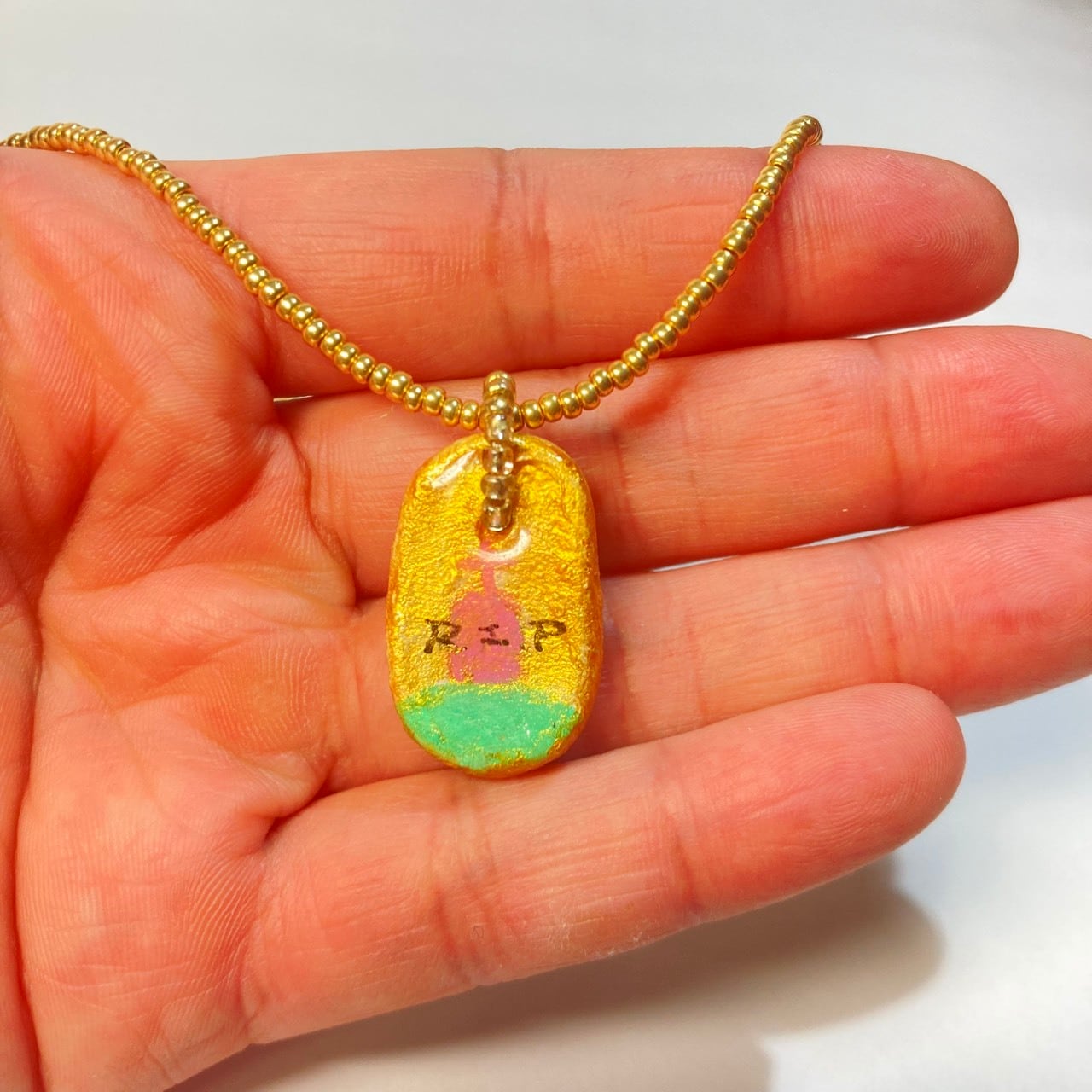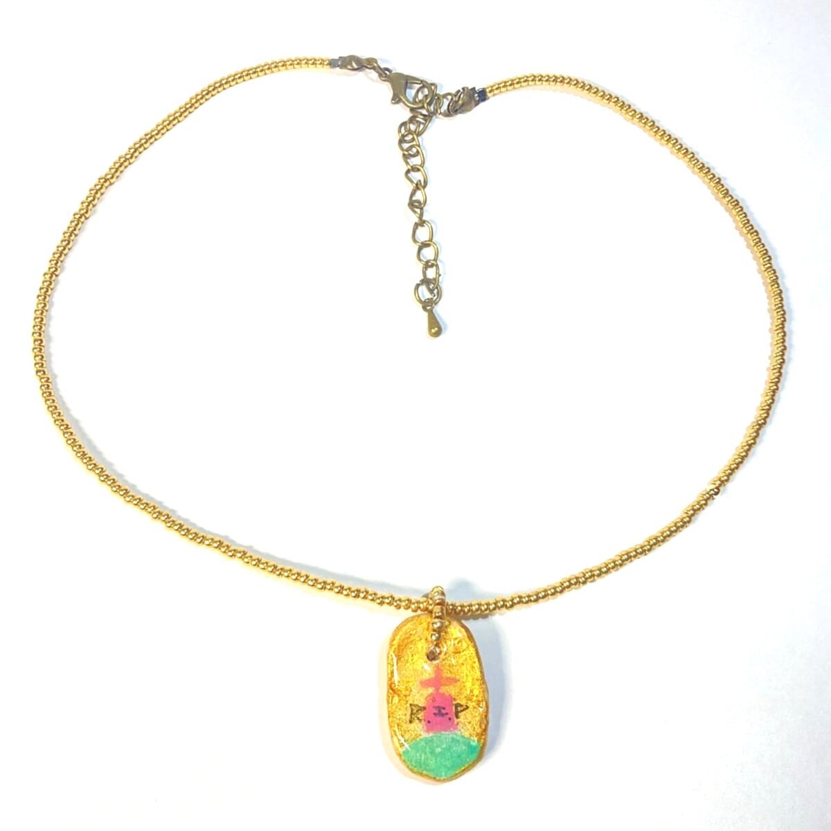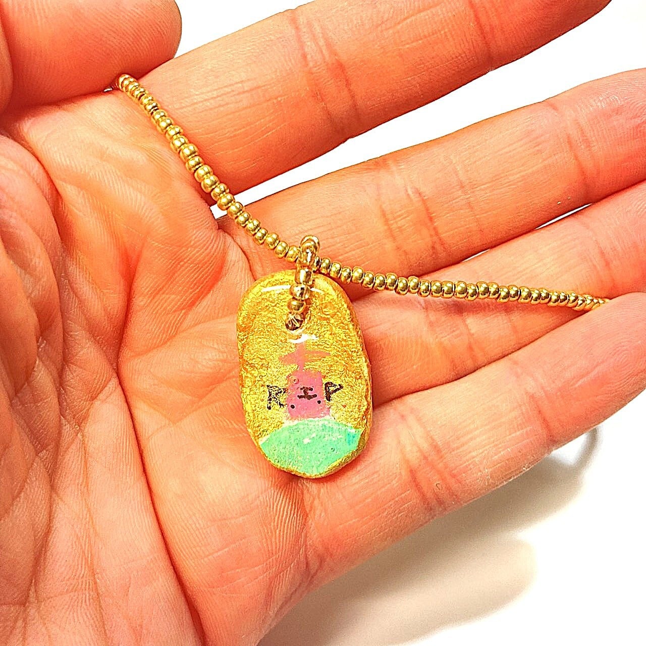 Ceramic Clay Charm & Gold Bead Necklace